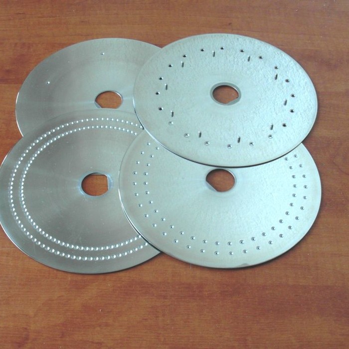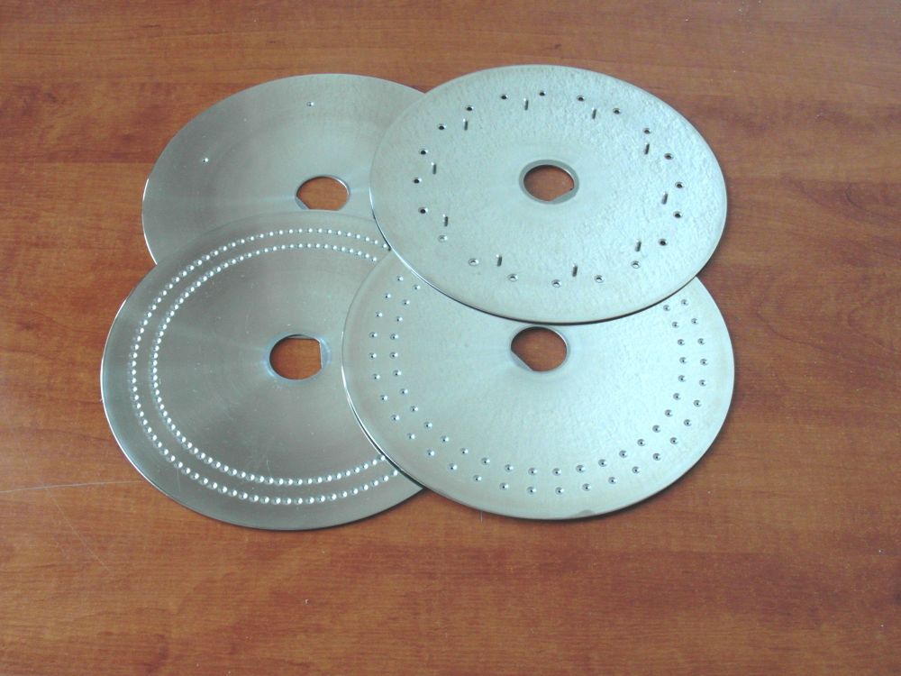 Высеивающие диски из высококачественной нержавеющей стали. Подбирая соответствующие диски следует принять во внимание вид культуры, расстояние семян в ряду, а также число высеянных семян на гектар. Число отверствий на диске от 6 до 120. Величина отверствий от 0,6 до 3,0 мм. Диски выполняются с одним или двумя рядами отверстий.