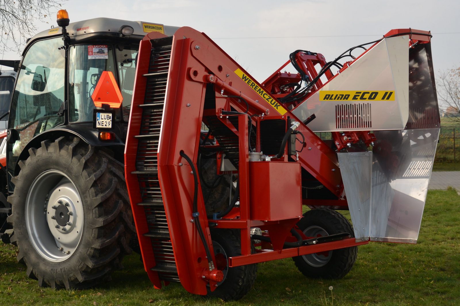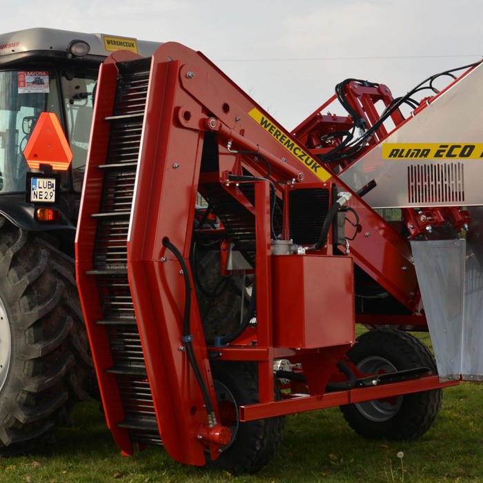 Комбайн для уборки моркови, петрушки, сельдерея, свеклы и других корнеплодных – ALINA ECO II прежде всего отвечает на потребности производителей овощей для небольших и средних посевных площадей. Овощи убранные комбайном ALINA ECO II предназначены на свежий рынок или для хранения. Комбайн работает с тракторами мощностью от 75 л.c. с обычными кабинами, гарантируя хорошую видимость. Аналогично к другим комбайном для уборки моркови кампании WEREMCZUK, также и комбайн ALINA ECO II оснащен основными, базовыми компонентами, которые влияют на эффективность работы одновременно сохраная конкурентоспособную цену. Эта модель оборудована инновационной конструкцией транспортера, что позваляет точно позиционировать его относительно прицепа, а также увеличивает обширность относительно ряда.