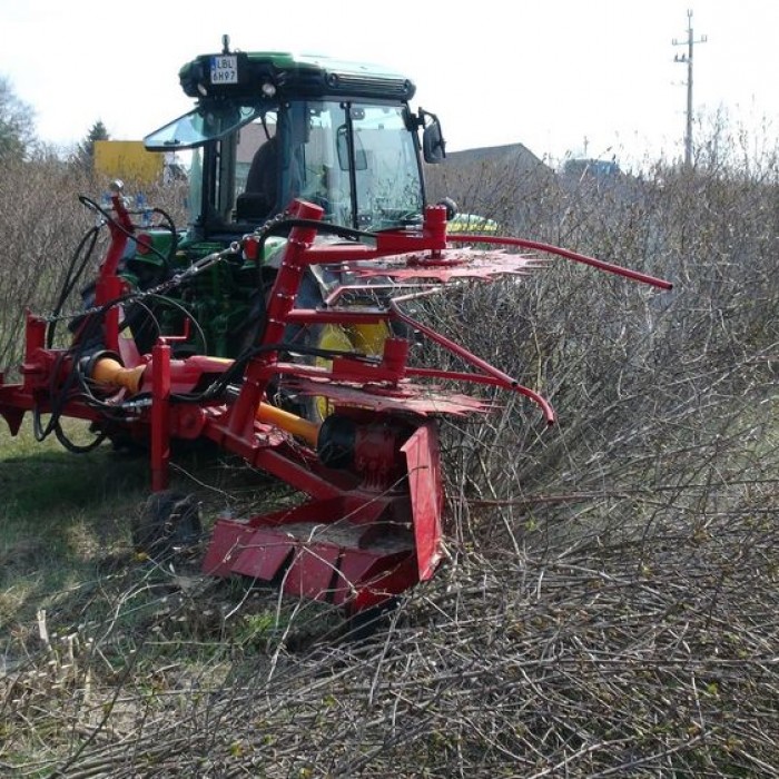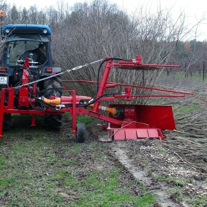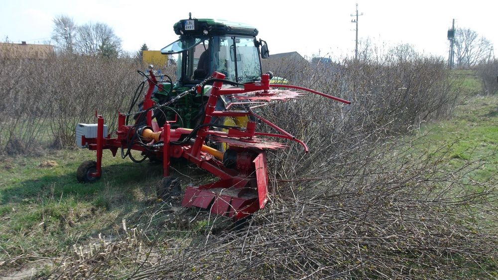 Машина для срезания кустов BERTA. Это эффективное оборудование для обрезки для обрезки аронии, смородины, малины и других кустов на уровне почвы. Машина состоит из несущей рамы и откидной рамы, на которой находится режущий элемент - дисковая пила с механическим приводом. Привод к пиле передается механически из валика ВОМ трактора. Широкий диапазон регулировки машины позволяет подобрать соответствующие параметры работы в зависимости от плантации. Система защитных кожухов гарантирует безопасность работы.