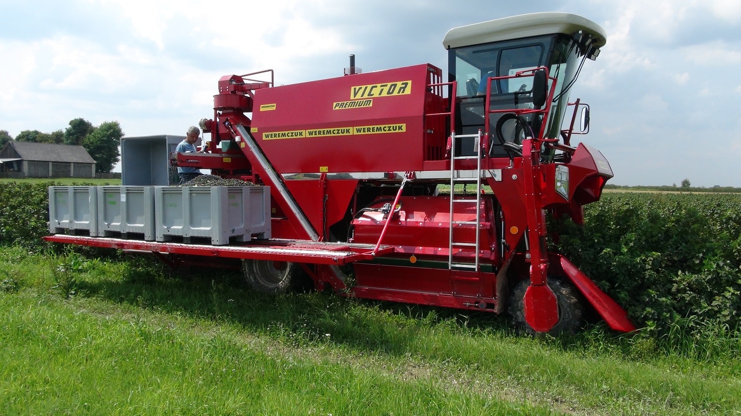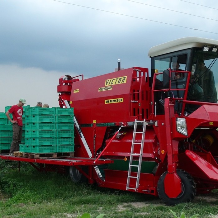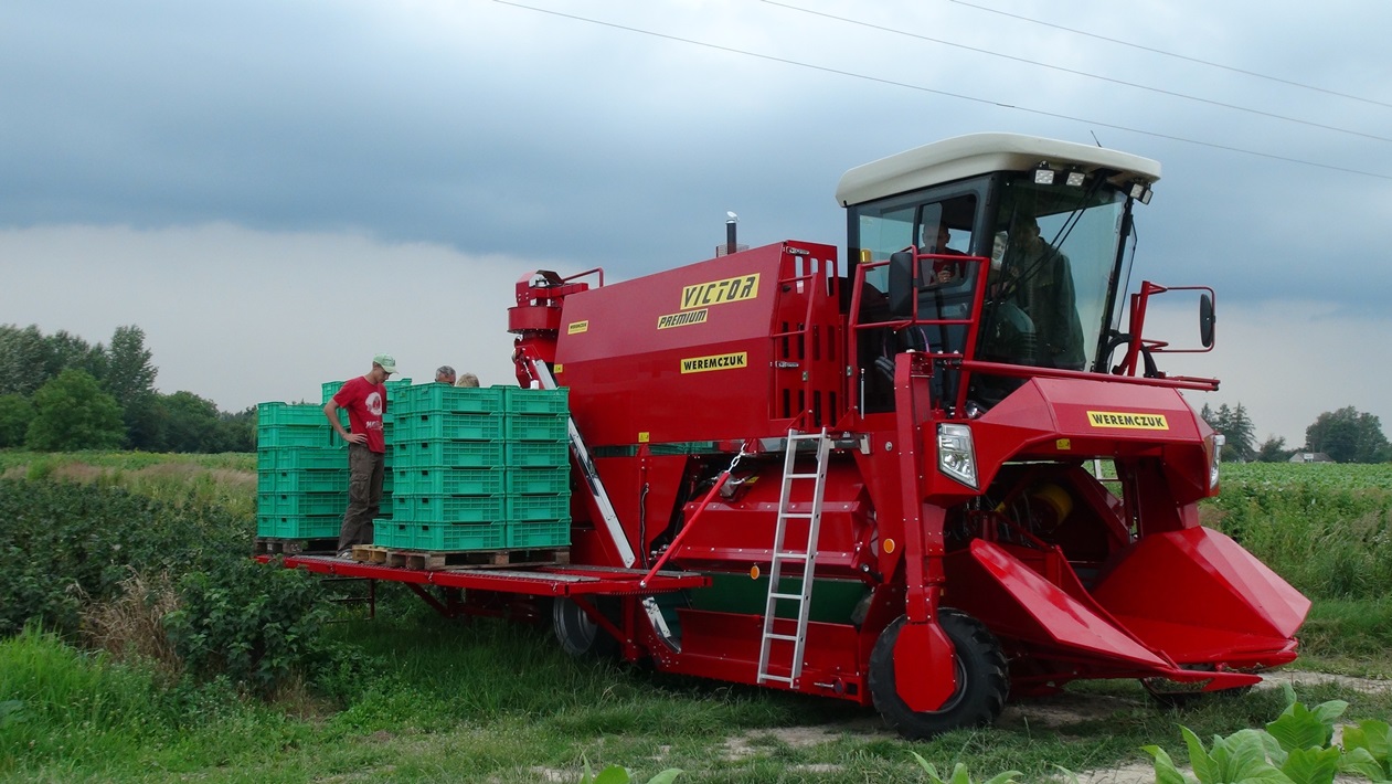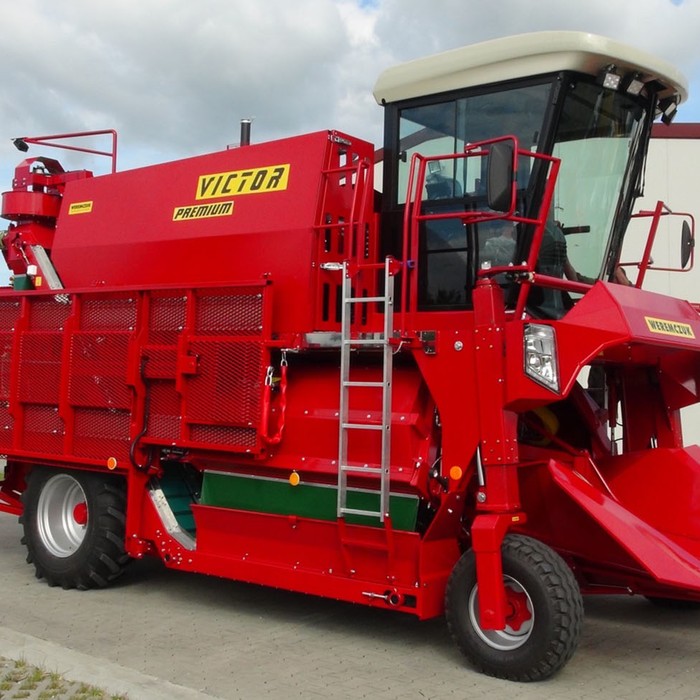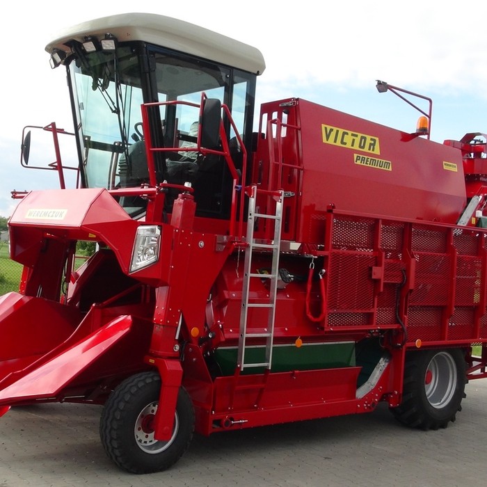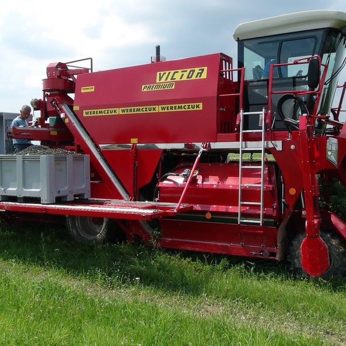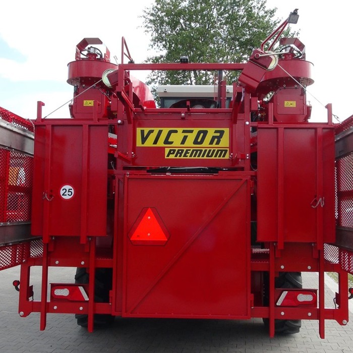VICTOR PREMIUM - самоходный однорядный комбайн для уборки черной смородины, аронии, крыжовника. Являющийся отличным решением для плантации от 30-40 га до несколько сот гектар. Модель VICTOR PREMIUM стандартно оснащен комфортной кабиной с повышенной шумоизоляцией, кондиционером и панорамным обзором. Большинство элементов управления находятся на подлокотнике кресла оператора, благодаря чему обеспечивает эргономичное и функциональное управление. Для изменения скорости и направления движения используется удобный джойстик, управление осуществляется плавно. Скорость транспортеров и вентиляторов регулируется с помощью потенциометров. Комбайн имеет жидкокристаллические дисплеи, которые отображают основные параметры работы: обороты двигателя, скорость движения и скорость транспортеров. Кроме того комбайн оснащен большим монитором, показывающим изображения с камеры заднего вида и камеры стряхивателя. Благодаря большой площади остекления и переднему панорамному стеклу в VICTOR PREMIUM, обеспечивается хорошая обзорность из кабины оператора. Эффективное светодиодное (LED) освещение обеспечивает комфортную работу в ночное время, благодаря чему машина становится еще эффективнее.
