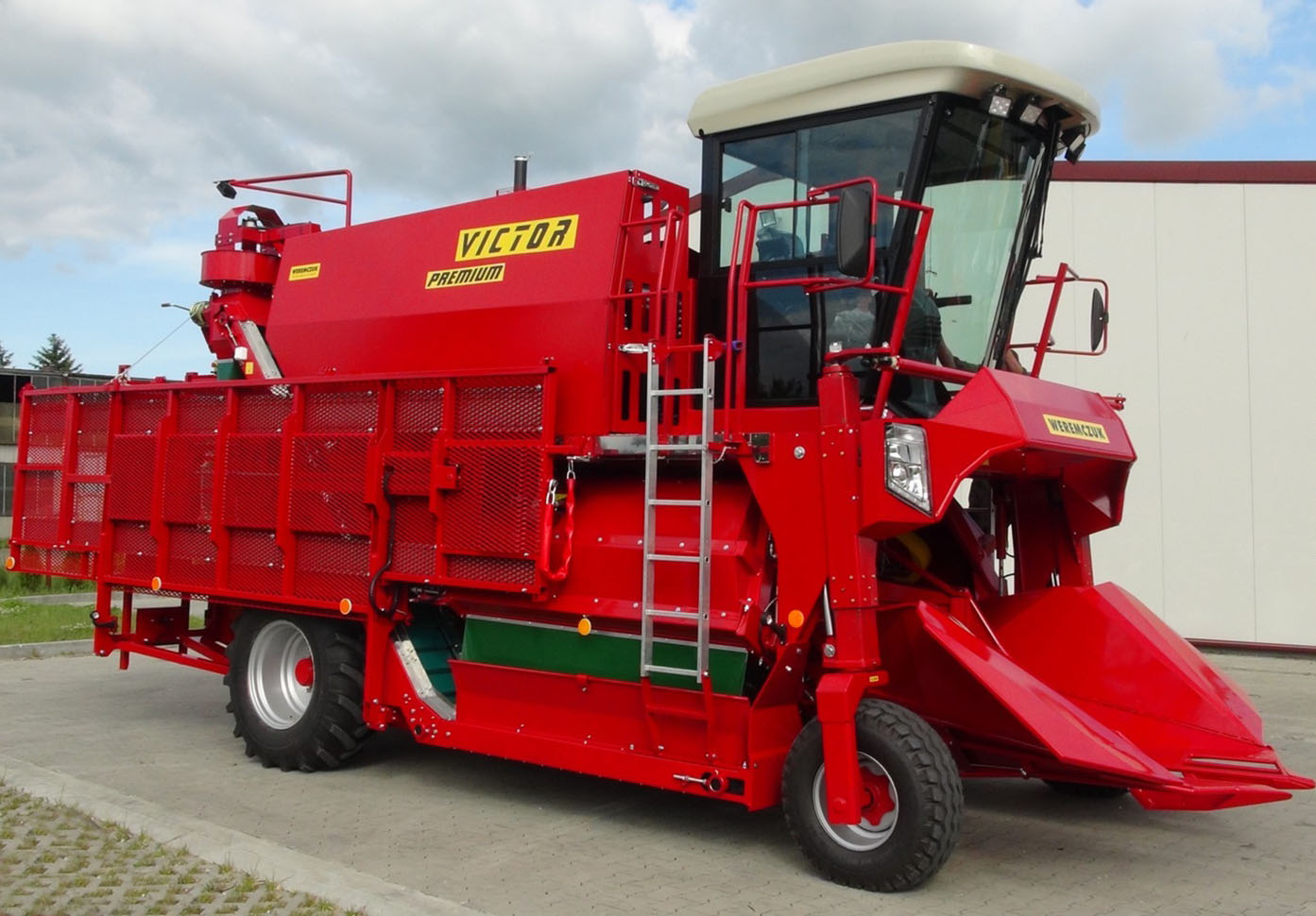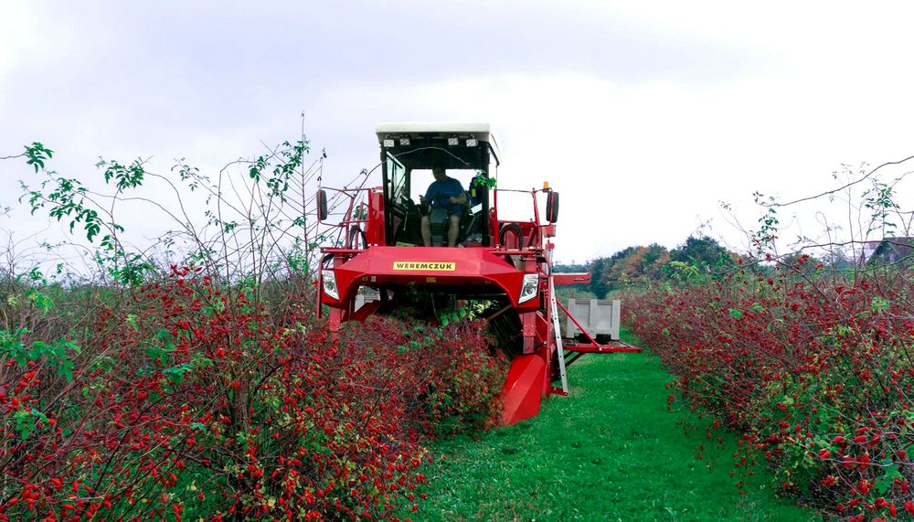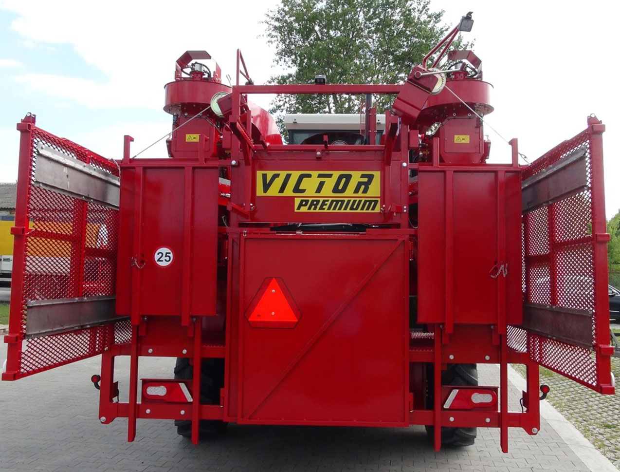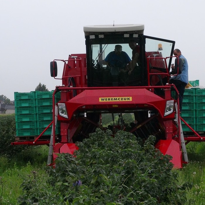 VICTOR PREMIUM - самоходный однорядный комбайн для уборки черной смородины, аронии, крыжовника. Являющийся отличным решением для плантации от 30-40 га до несколько сот гектар. Модель VICTOR PREMIUM стандартно оснащен комфортной кабиной с повышенной шумоизоляцией, кондиционером и панорамным обзором. Большинство элементов управления находятся на подлокотнике кресла оператора, благодаря чему обеспечивает эргономичное и функциональное управление. Для изменения скорости и направления движения используется удобный джойстик, управление осуществляется плавно. Скорость транспортеров и вентиляторов регулируется с помощью потенциометров. Комбайн имеет жидкокристаллические дисплеи, которые отображают основные параметры работы: обороты двигателя, скорость движения и скорость транспортеров. Кроме того комбайн оснащен большим монитором, показывающим изображения с камеры заднего вида и камеры стряхивателя. Благодаря большой площади остекления и переднему панорамному стеклу в VICTOR PREMIUM, обеспечивается хорошая обзорность из кабины оператора. Эффективное светодиодное (LED) освещение обеспечивает комфортную работу в ночное время, благодаря чему машина становится еще эффективнее.