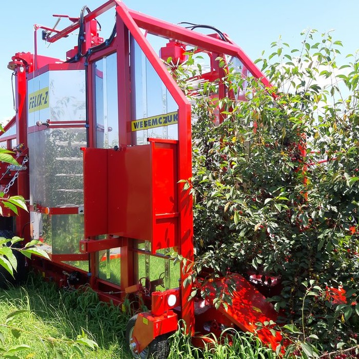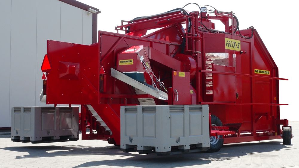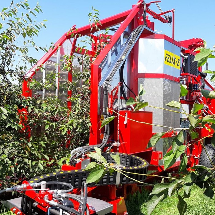 FELIX/Z - однорядный прицепной комбайн, является современной машиной для уборки урожая в садах, веденых по специальной технологии шпалера. Комбайн работает в соответствующих междурядьях, адаптированных для уборки урожая. Все рабочие органы в комбайне FELIX/Z имеют гидравлический привод, благодаря чему обслуживание комбайна является простым. Кроме того, это позволяет быстро настроить рабочие параметры, соответственно текущим потребностям. Комбайн оснащен поворотными колесами и дышлом с гидравлическим управлением, благодаря которому управление выравнивание в ряд не является проблемой для оператора трактора.